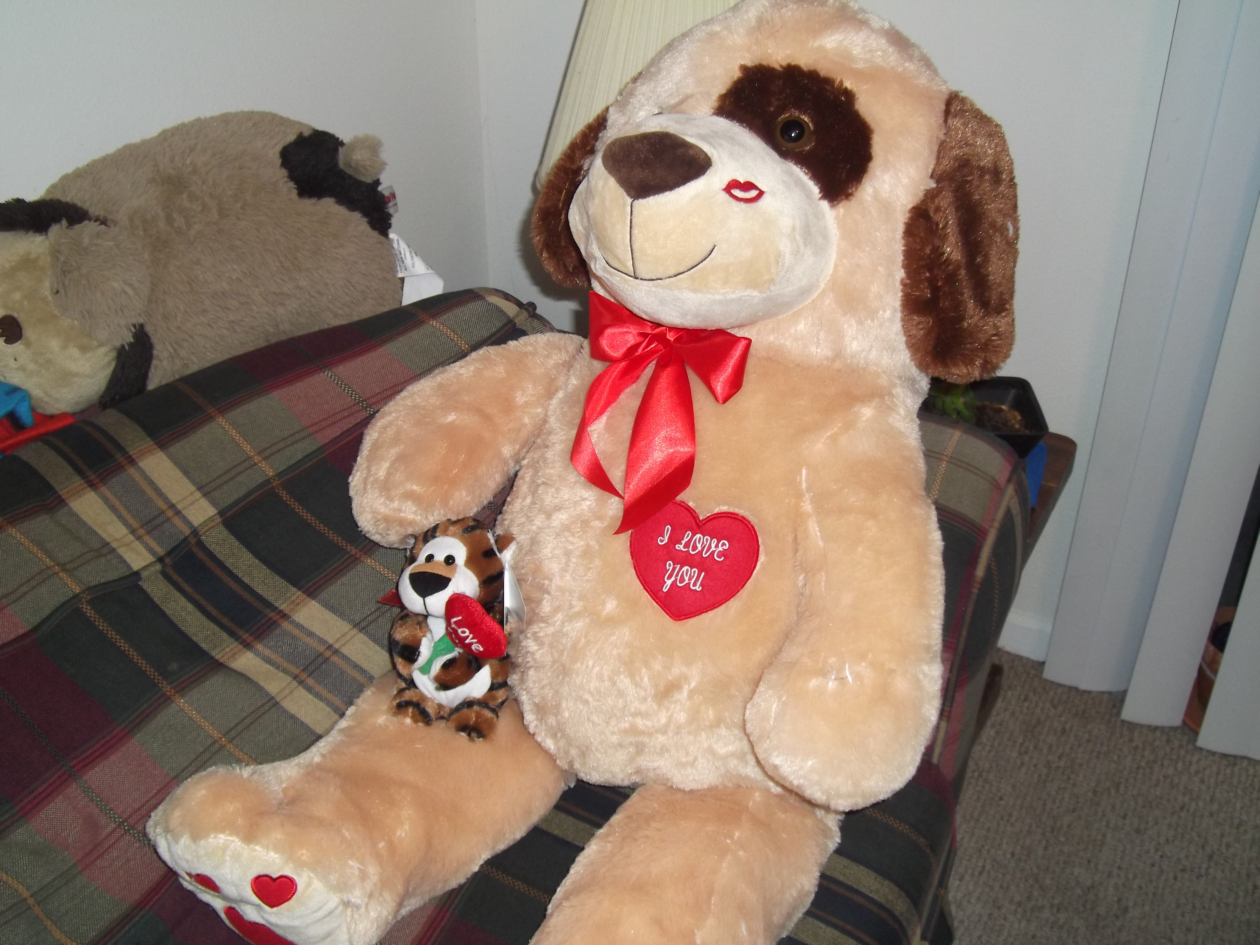So, for Valentine’s Day, I dressed up in a cute pink dress and gave the candy out on my off times. Lots of the ladies and some of the guys at our school got flowers. I always wanted flowers sent to me at work and to place on my desk, now that I have one, but, alas, Derrick can never do it due to his schedule or he chooses not too. I knew I was not getting flowers, but deep down, I was hoping. So, I got home and we decided to give half our gifts then and the other half after our lunch on Sunday (we both worked long hours Friday and Saturday, plus, lunch is cheaper). He told me to close my eyes, which made me nervous. I asked it is was alive and if something bit or licked me, I would not be a happy camper! He ran out of the room and I closed my eyes, nervous. A few breathes later, I felt something fuzzy on my lap. Now, I love dogs, but we are not allowed to have them in the apartment. I was wiggling and about to freak out, but he told me to open my eyes and staring me in the face was…*dramatic pause*