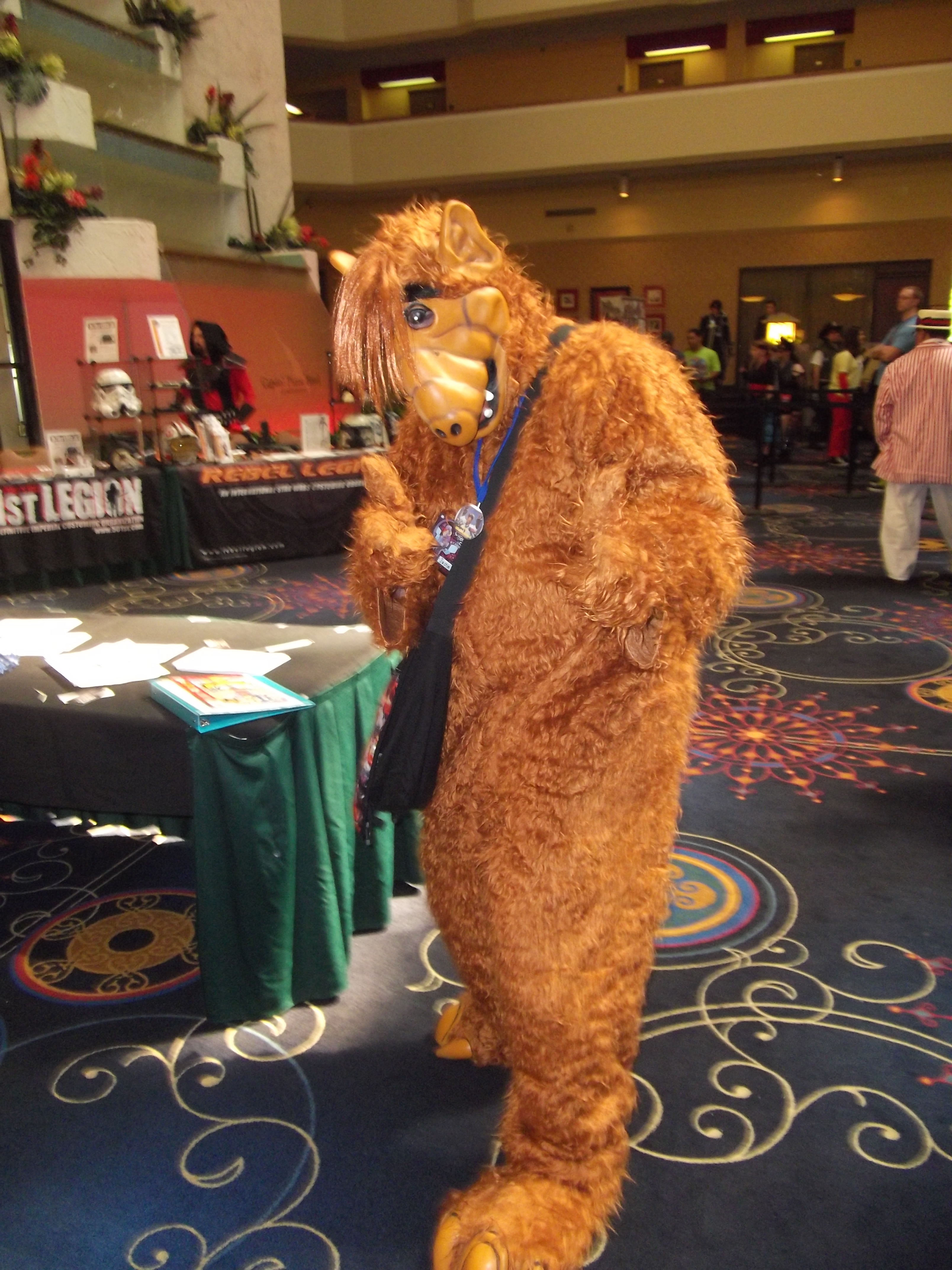 As we were waiting for things to get fixed, Rodney called all the organizations up on stage to talk and he was joking with all of them in a playful, funny way, like they were all his pals. I loved that. My pal and Pokémon training partner, Danny, was up there in all his Shiny Gleceon glory. He did great! ^-^ This took a while and we introduced the other official guests. Dan and Jillian came up with the puppies, who didn’t want to get off the stage and were cuddling with each other…SO. KAWAII!!! =O Dan even told Rodney, who made fun of him for not using a microphone (he doesn’t need one) that he would get Rodney later with his Jedi Party trick and Rodney backed away, the crowd thundering with claps. Dan (we met each other at the stairway since the elevator was busy before the ceremony and he groaned that we were on the same floor then the whole time he kept pulling my Pokeball hat in my eyes and we were fussing like kids, going blah, blah, and making up sounds. It was so fun and we were both trying not to chuckle!) grabbed me before the ceremony started to see where I was sitting and he announced my name on stage and made me stand! I didn’t have time to be nervous like normal for he opened his mouth and told me and Jennifer, our guest author, that he knew that we were not at cute as him, but the crowd would learn something fron two authors. We shrugged at each other across the crowd and then gave him the female, “Hmmmm…Excuse ME?” look. HA! After this, they started the Iron Cosplay contest. This is where Rodney selected 15 people and they were divided into groups of 5. They had to in 15 minutes and with only 6 items from a box of random objects, create a cosplay! It was a riot! The winner was well deserved and I SO wish every con did this event! Genius and it got us all so pumped!