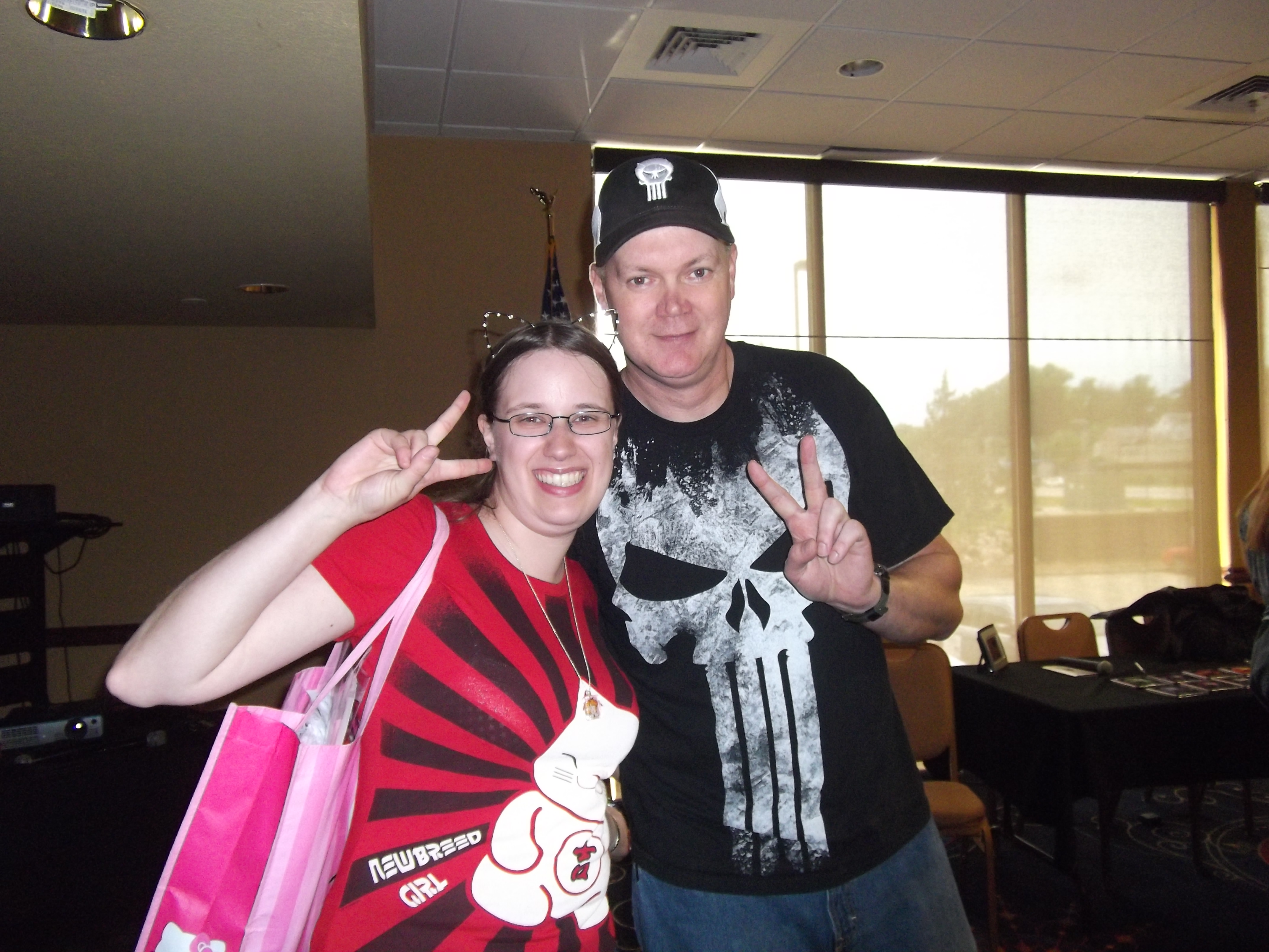 After this, I could breath. Derrick and I went to go get lunch for everyone at McAllister’s Sandwich place. It’s similar to a St. Louis Bread Company, but better. We had to choke our food sadly so it didn’t taste as good as it would have and it was pricey, but the mac and cheese was some of the best I have ever had and I am a mac and cheese expert! ^_^ This kept me full all day too. At 3:00, we went to a panel called “Here’s Johnny…Yong Bosch.” Sadly, we were in the last row, which Miles was grumbling about and Johnny talks SUPER quiet! The stories were cute and the questions good, but you could tell he was tired and I had trouble hearing him (and getting good shots of the panel, but it is all on my YouTube). Him and Jason David Frank, Tommy Oliver from Power Rangers, seemed to get in A LOT of trouble together! I would give this panel a 7 out of 10.