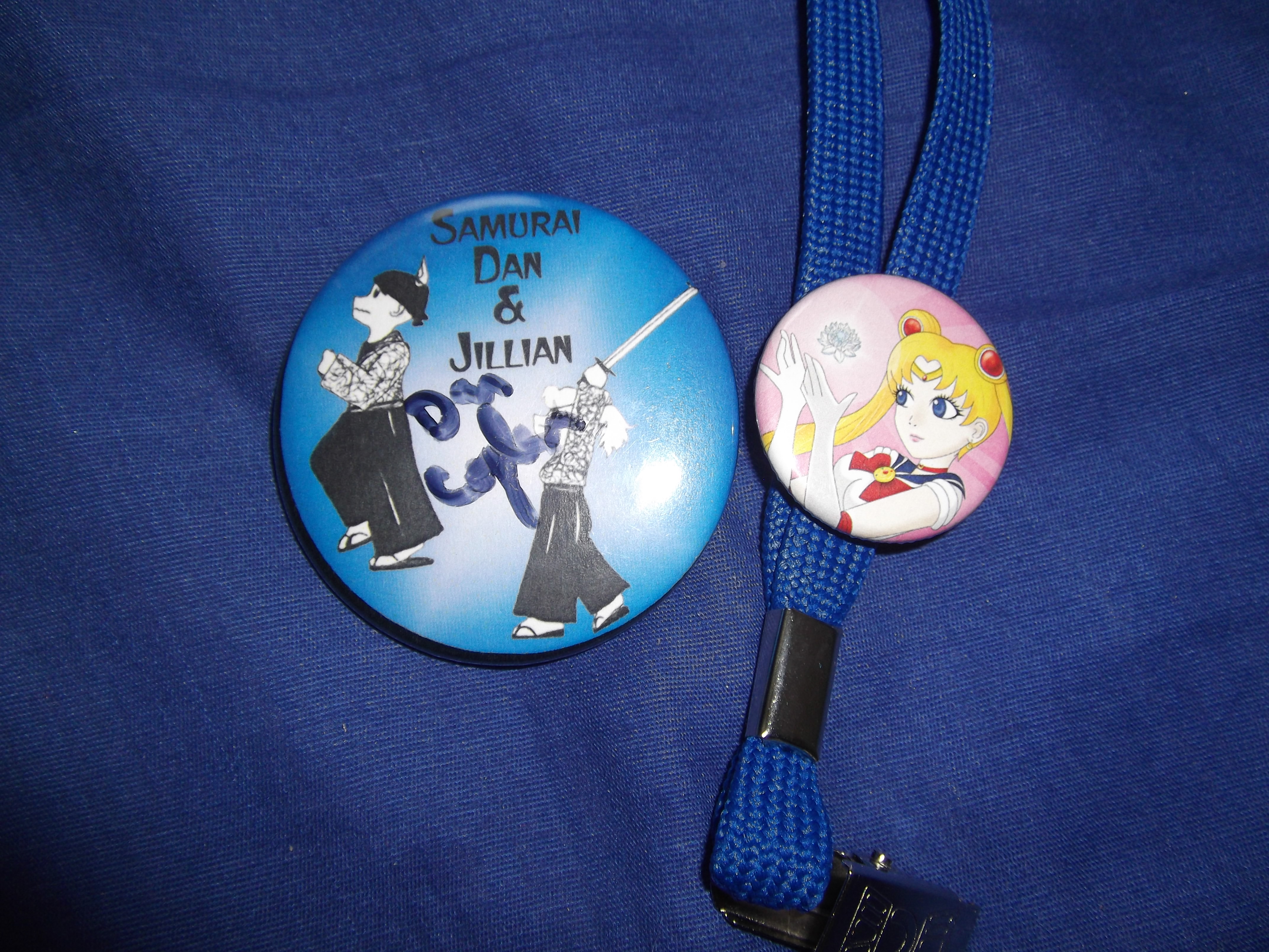 After this, we went to the most talked about event of the con…The 18+ Cards Against Humanity with Dan and Jillian. There were about 200+ people there and it was weird to hear everyone rip out naughty words. Dan kept grinning at me in the corner with my group and asked if I was okay once. He patted my Gleceon ears too! *sighs* We didn’t win any, but it was entertaining and Dan allowed filming. 0.o Still, I cannot repeat any of the topics, but it was fun. Too vulgar for me? Yeah…but that’s part of the game. I wish people would have quiet talking while they were reading the answers though; it was hard to hear. 9 out of 10. Dan let us all leave 5 minutes early and all of us stormed out of the room and invaded the Eyeshine concert, my light saber high in the air (which I think is now, after 3 years, officially dead for it was flickering so bad that I had to switch to my new LED num-chucks I got at Anime St. Louis this year. A moment of silence for this sharp bearer of light…). I did hang back and talk to Dan, being one of the last ones to leave and he signed my Samurai Dan button, upset I picked the one where his wife was chasing him with a sword (she signed the purples one and I thought blue was a boy’s color). I <3 how he signed it over his wife’s face! HA!